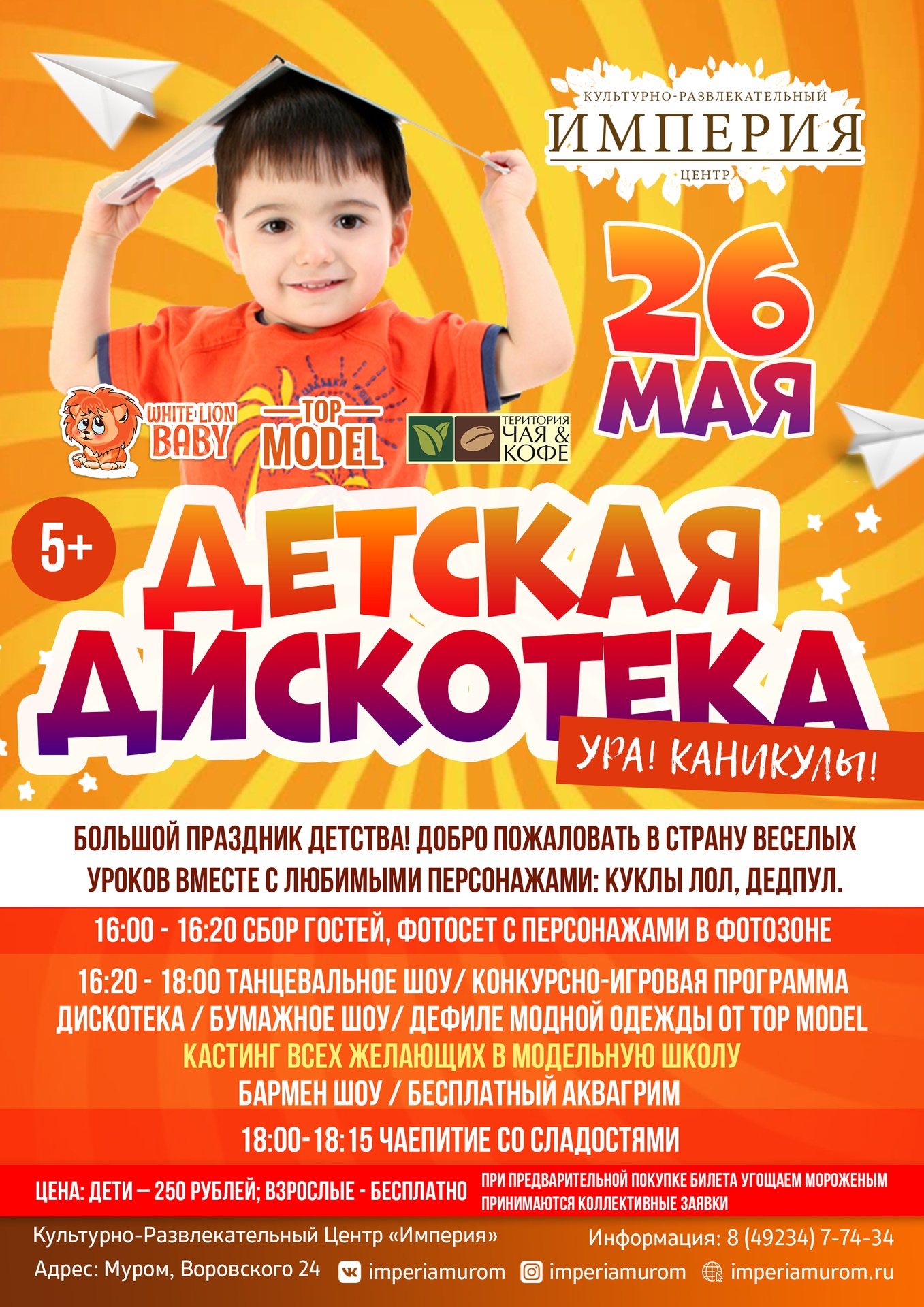 - Детский центр - Детские праздники в Империи - Детская дискотека "УРА! Каникулы!"